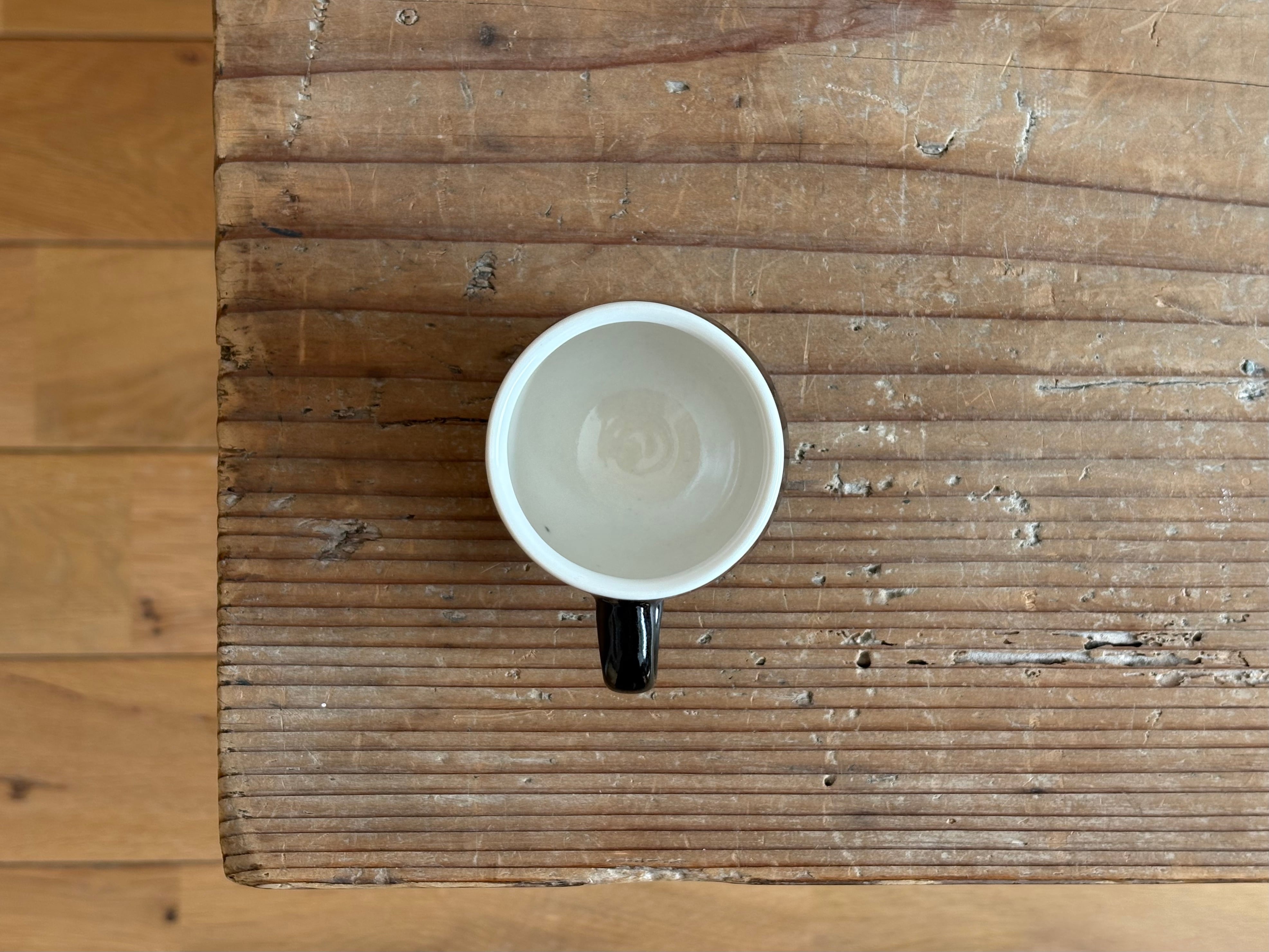 見込み部分(表面)に白釉、皿裏(裏面)に黒釉をそれぞれ使用し、フランス北西部の街で誕生したキュノワール(cul noir)というスタイルに。キュ=お尻、ノワール=黒という意を合わせて黒いお尻という愛称がその名の由来。