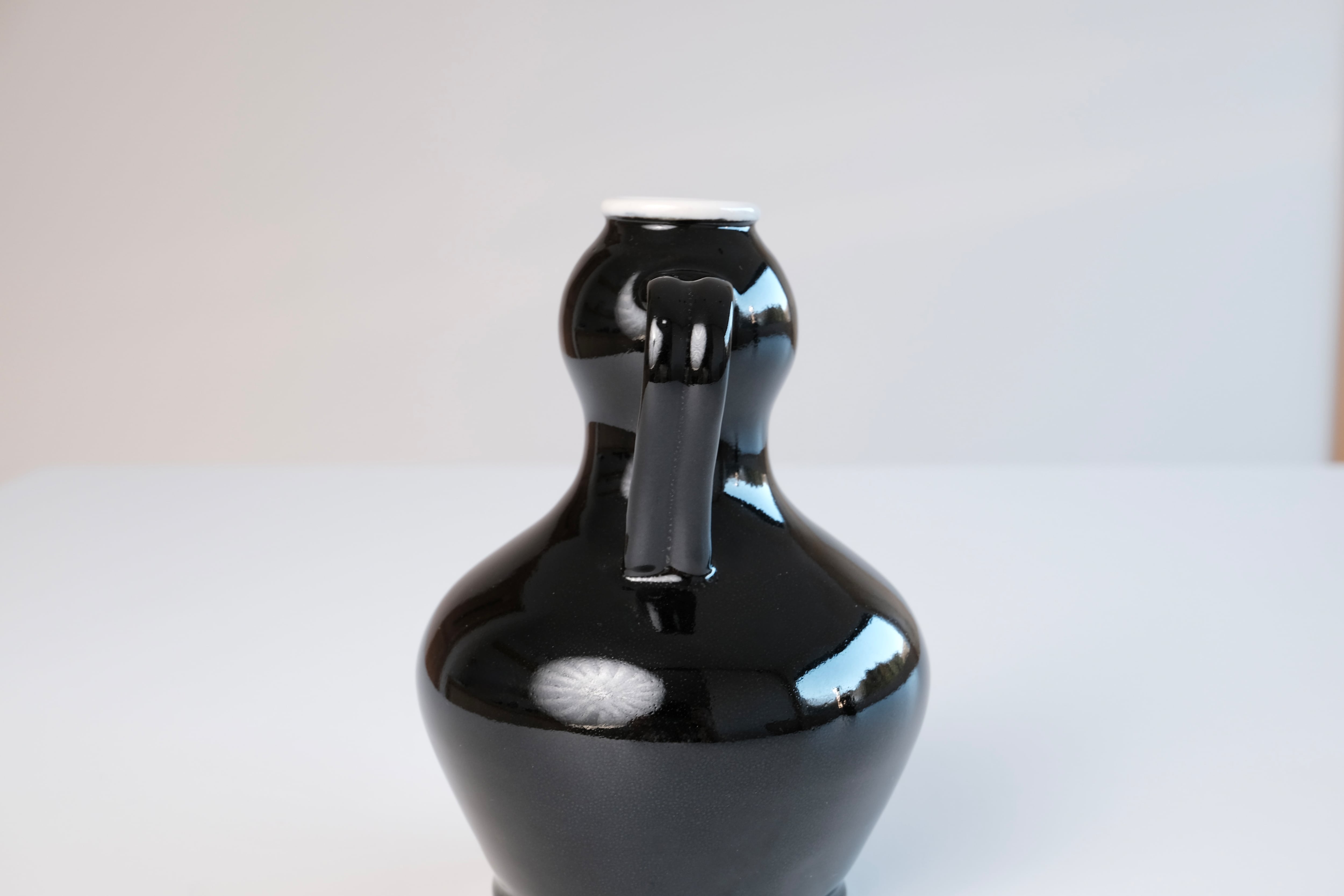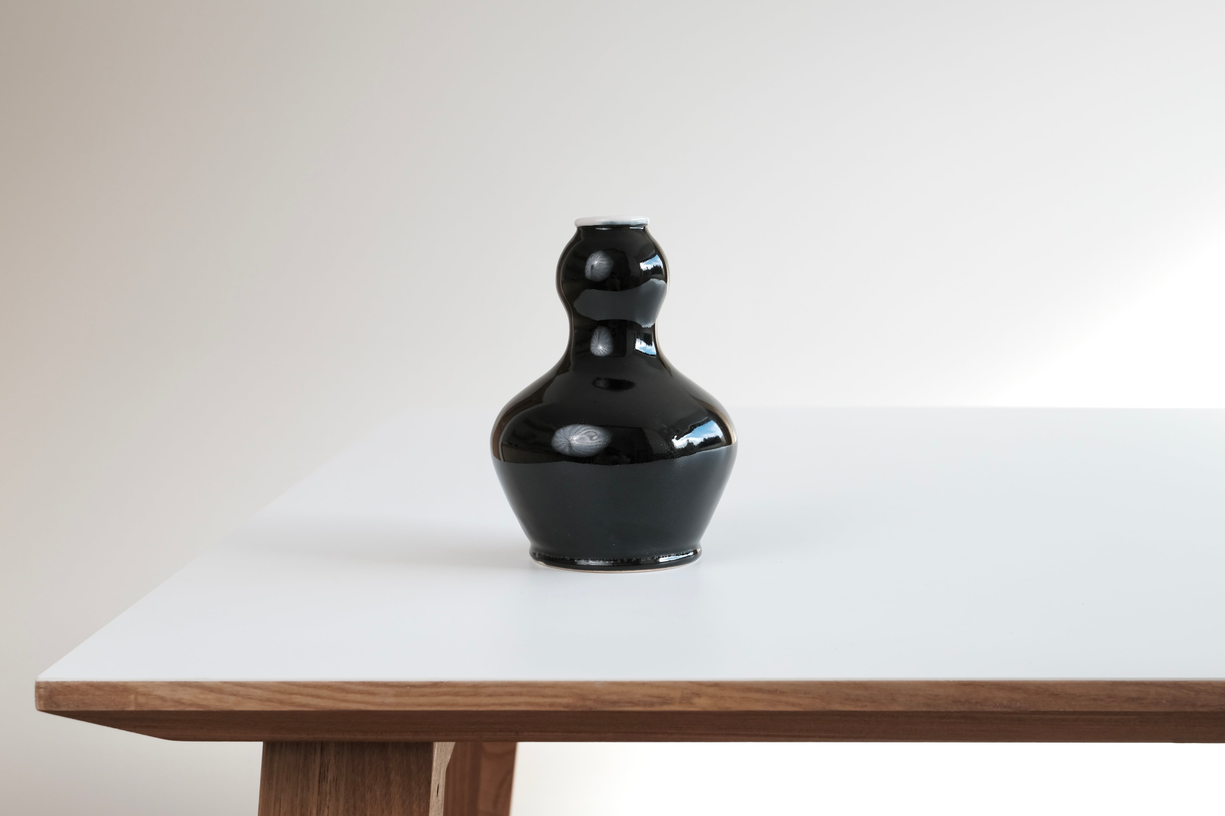 瓢箪のようなくびれを持つユーモラスな花瓶です。